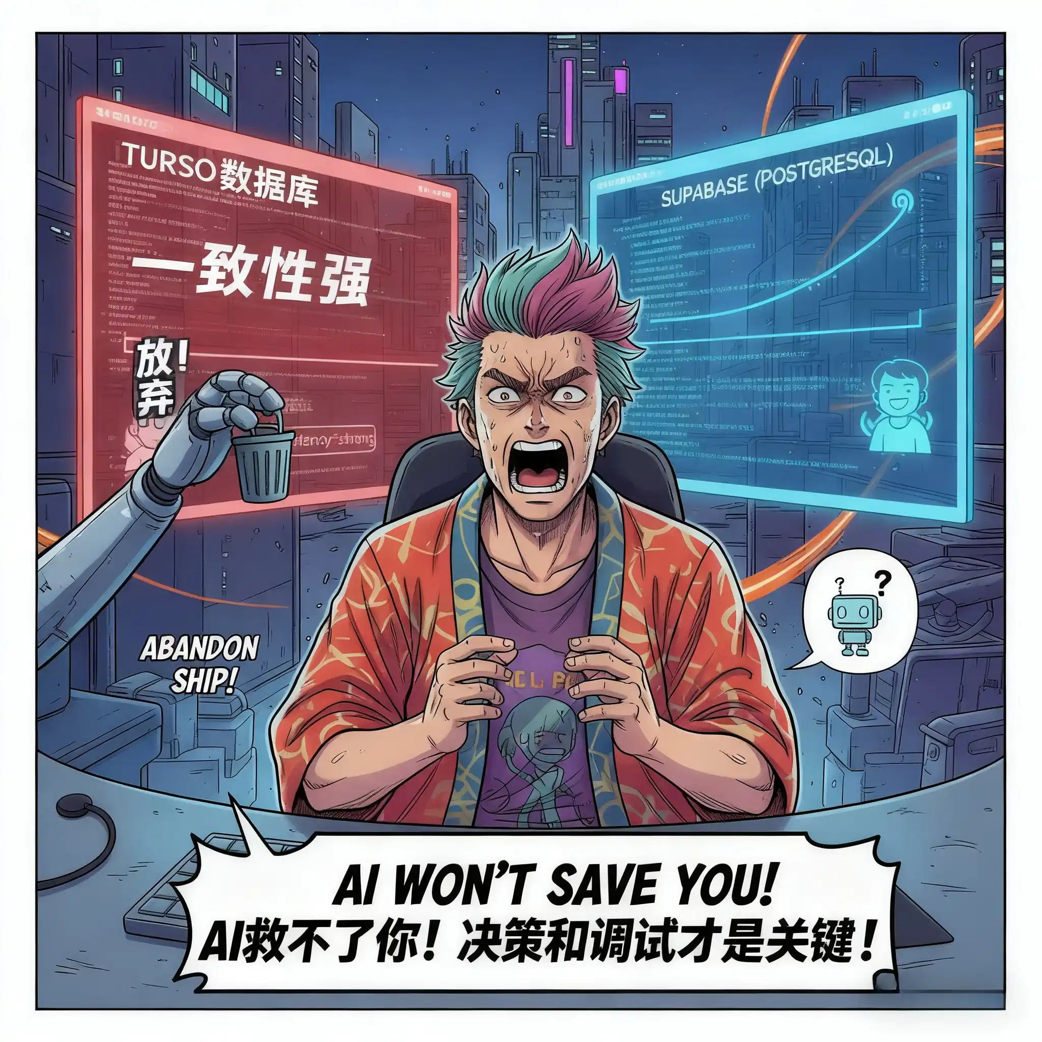 最后果断弃坑,换回了基于PostgreSQL的 Supabase。这个决策,AI给不了你。你必须懂数据库的一致性模型,才能明白Turso的异步特性跟我的业务场景是根本冲突的。